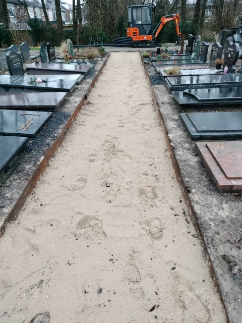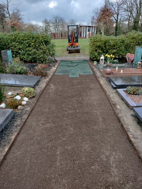 Door de de vele regenval ontstonden er grote problemen op deze begraafplaats. Wij hebben drainage aangelegd in de paden en bij de hagen waardoor de paden nu weer begaanbaar zijn en er geen water meer blijft staan bij de paden, graven en hagen. Ook hebben we verschillende gazons vervangen en hagen weer opnieuw ingeplant.